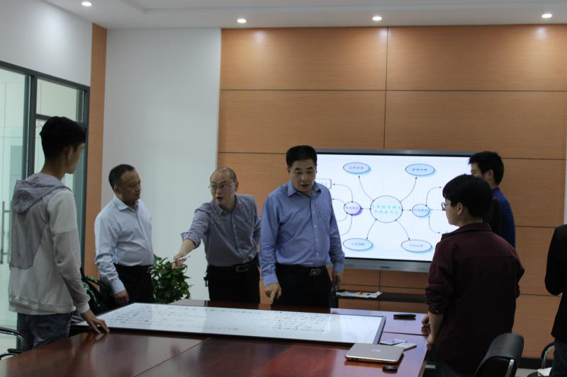在会议室,校领导聆听了瑞翼工坊中“老年健康项目部”的员工对自己项目的简介,虽然只是录制一个简短的视频,但是大家都积极而认真的准备着。借此机会,柳董事长有感而发,表示这种由员工自学自授,以团队形式开展学习工作的方式,已经逐渐与国际接轨,能够有效弥补员工在动手能力上的不足,让员工真正体会到学习的乐趣,适应社会以创新为导向的发展趋势。