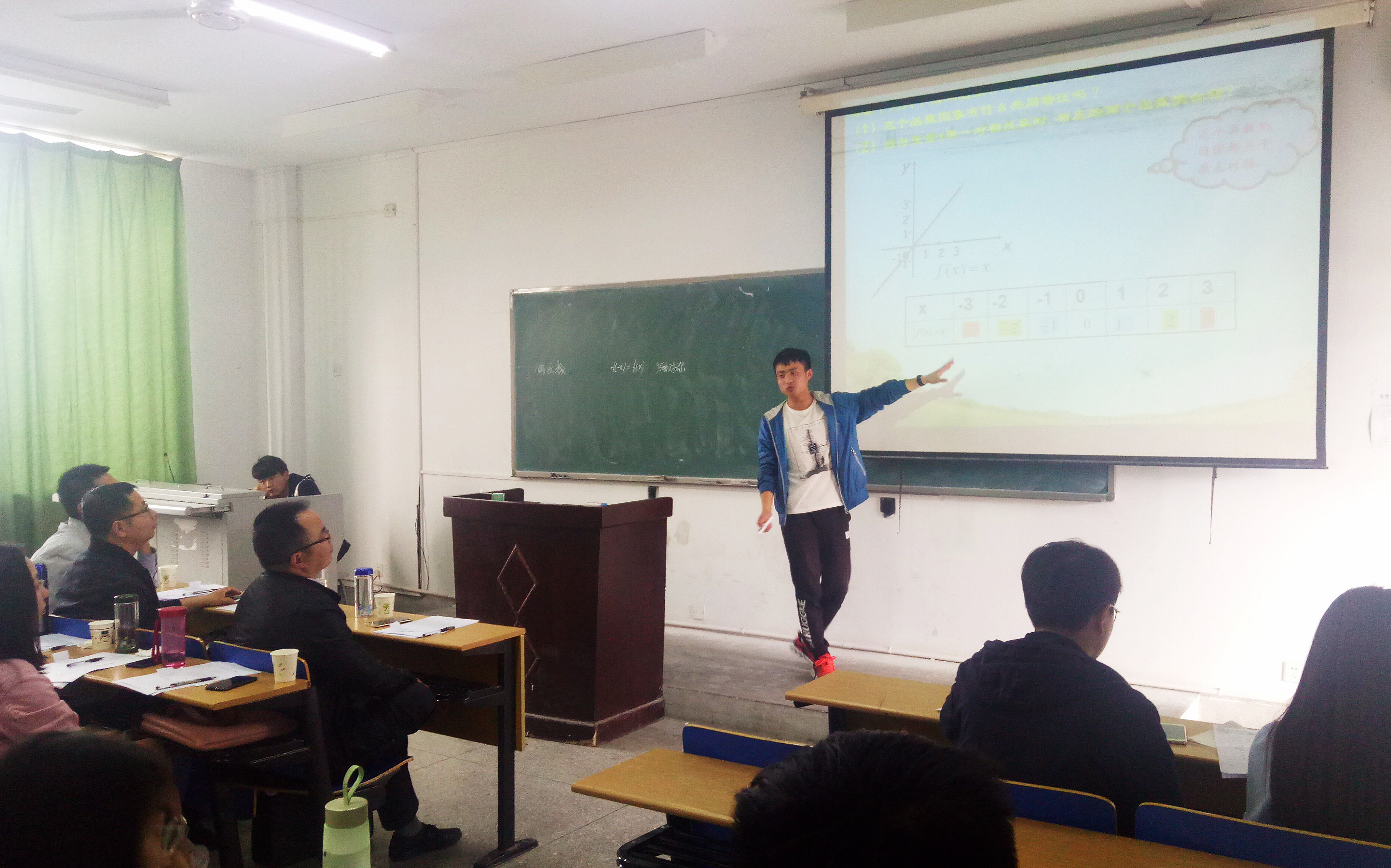 为提高师范生教学技能水平,提升专业实践能力。4月25日晚数学与计算机公司于博奕北402教室成功举办第一届数学教学技能大赛;此次比赛邀请李小新教授、周恺博士等7位老师担任评委嘉宾。