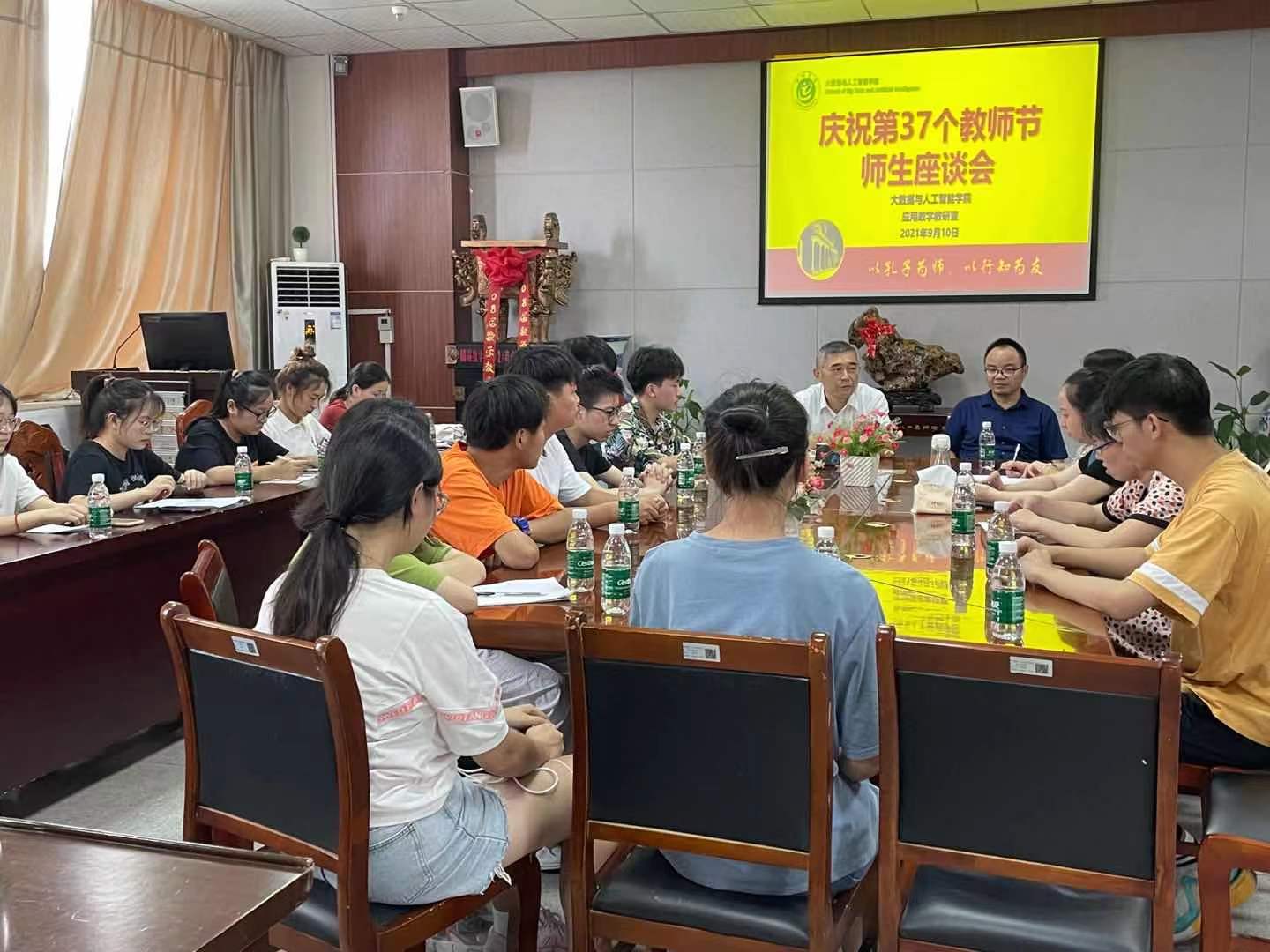 为庆祝第37个教师节,9月10日下午,william威廉中文官网在博奕南一楼会议室举行数学与应用数学专业师生代表座谈会。公司党委副书记詹春智,教师代表李小新教授、班爱玲老师、陆心怡老师以及数学与应用数学专业2018级、2019级20余位员工代表参加会议。会议由教研室主任高芳老师主持。