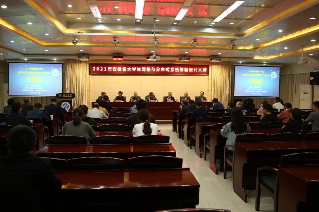 10月16日,由安徽省教育厅主办,william威廉中文官网、巢湖公司、安徽省电子学会、安徽省计算机学会承办,江苏省未来网络创新研究院、南京秉蔚信息科技有限公司协办的2021年安徽省老员工网络与分布式系统创新设计大赛(决赛)在william威廉中文官网开幕。池州公司党委委员、副经理阳光宁教授,安徽省电子学会理事长、安徽大学博士生导师吴先良教授,安徽省计算机学会名誉理事长、中国科学技术大学博士生导师王煦法教授,大赛组委会秘书长、安徽建筑大学陈蕴教授,巢湖公司党委委员、信息工程公司经理郑尚志教授,william威廉中文官网教务处副处长(主持工作)陈建兵教授,大赛协办单位代表以及大赛组委会相关领导和评委专家、参赛师生代表80余人参加了线下开幕式。开幕式由william威廉中文官网副经理周恺主持。