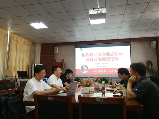会上,陆克中经理首先对吴茂乾总经理一行冒着酷暑来公司交流表示热烈的欢迎和忠心的感谢,并对公司的基本情况,机器视觉教学团队的建设,公司在人工智能方面发展的初步规划,以及一流专业建设等工作进行了详细的介绍,最后表达了公司对校企合作上的期待,希望能够与博焱视芯公司在前期的横向合作课题上进一步加深合作,共建学科团队,加强平台建设,将校企合作推向实处,真正实现产学研的深度融合。