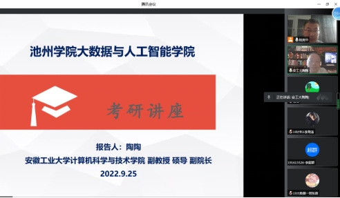 为了更好地指导考研同学志愿填报及冲刺工作、解答他们的疑惑,在准备考研的关键阶段,9月25日公司邀请安徽工业大学计算机科学与技术公司负责研究生工作的陶经理,以在线的方式作考研辅导报告。会议由陆克中经理主持,2023届考研同学参加了会议。