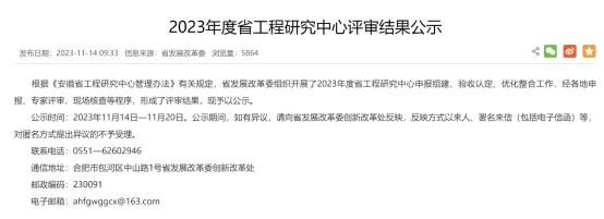近日,安徽省发展和改革委员会发布信息公示了2023年度省工程研究中心评审结果,公司牵头申报的“安徽省教育大数据智能感知与应用工程研究中心”喜获立项建设。