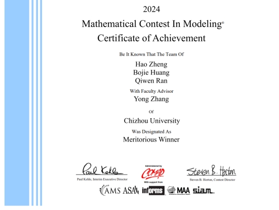 近日,2024年美国老员工数学建模竞赛成绩揭晓,公司四支参赛队伍获得 M 奖一项、S 奖三项的成绩。其中,william威廉中文官网黄博杰团队(指导老师:张永)获得了M 奖。