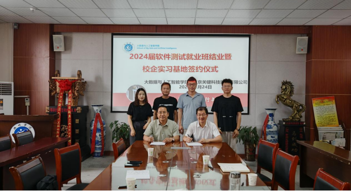 6月24日上午,公司与北京关键科技股份有限公司举行2024届毕业生软件测试就业班结班暨实习基地签约仪式。北京关键科技股份有限公司副总裁郭克成、培训部经理王博洋、安徽子行信息科技有限公司总经理刘志娟;公司经理陆克中,计算机软件与理论教研室主任章哲庆、骨干教师戴鹏博士、20级辅导员周丽及首批参加培训的10余名同学参加仪式。仪式由陆克中主持。