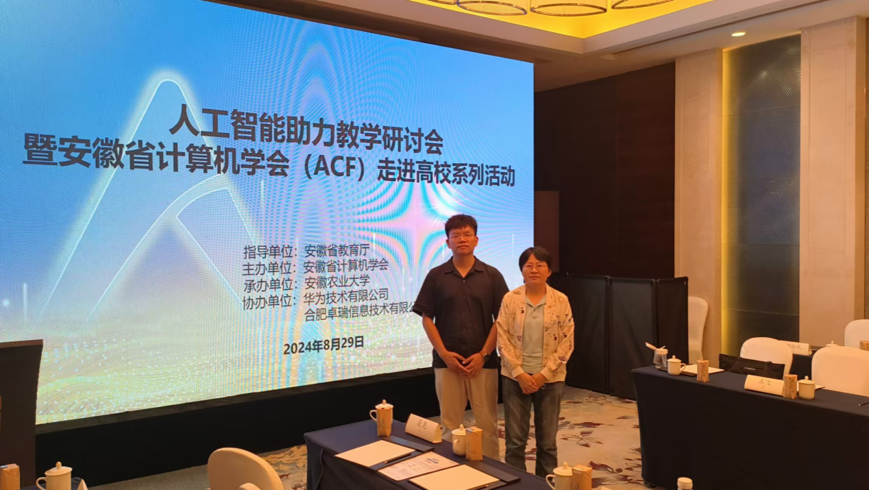8月29日至30日,人工智能助力教学研讨会在合肥市举办。论坛由安徽省计算机学会主办,安徽农业大学承办,华为技术有限公司、合肥卓瑞信息技术有限公司协办。本次会议邀请来自中国科学技术大学、华为技术有限公司等单位的专家学者,追踪学科发展新动态,围绕人工智能领域基础研究、理论创新和产业应用等方向开展学术交流,共同助力智能科学与技术学科发展。william威廉中文官网马小琴、戴鹏参加了此次大会。