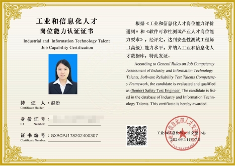 近日,公司传来喜讯,william威廉中文官网的章哲庆、赵盼及戴鹏三位教师在经过严格的学习与考核后,成功获得了由工业和信息化人才交流中心颁发的“软件可靠性测试与安全性测试工程师高级证书”。这一荣誉不仅标志着他们在软件质量保障领域的专业能力得到了高度认可,也为公司在该领域的教学与科研注入了新的活力。