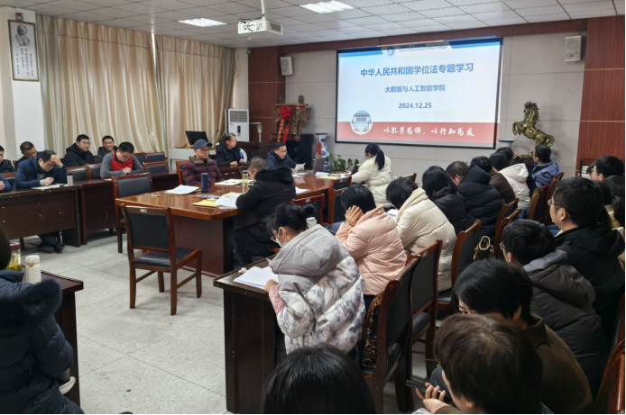 会上,大家一起学习了《中华人民共和国学位法》中的学位工作体制、学位授予资格、学位授予条件、学位授予程序和学位质量保障等内容。