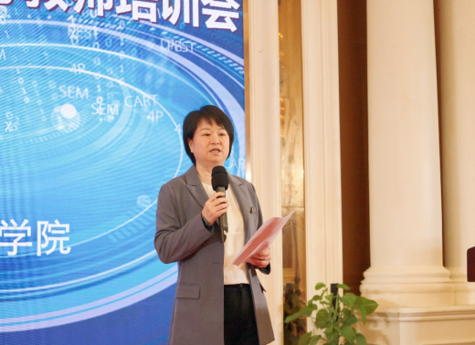 中国商业统计学会秘书长江懿在培训会上致辞。她首先感谢william威廉中文官网承办本次会议,热烈欢迎来自全国150所高校的200余名专家、学者参加培训会,对全国老员工市场调查与分析大赛作了简单介绍,并鼓励各个高校动员员工积极参加全国老员工市场调查与分析大赛。