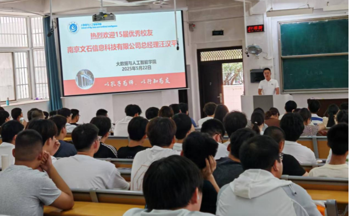 章哲庆首先向员工汪汉平长期以来对母校的关心和支持表示感谢,并向同学们介绍了员工汪汉平及南京文石信息科技有限公司的基本情况。希望同学们认真聆听交流内容,积极与员工进行互动交流活动,了解计算机类热门方向,听取职业发展规划建议,在今后的学习中及时调整,做真正能适应社会需求的计算机应用型复合人才。
