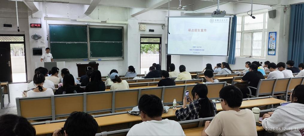 安徽工业大学大学微电子与数据科学公司张涛教授从公司概况、学科优势、团队力量、科研平台、人才培养等方面进行了全面介绍。重点讲解了该院在基础数学、计算机等方向的学科特色,以及在公司产品方面的创新举措。在互动环节,同学们踊跃提问,就研究方向选择、导师双选机制、科研能力培养等问题与宣讲老师进行了深入交流。