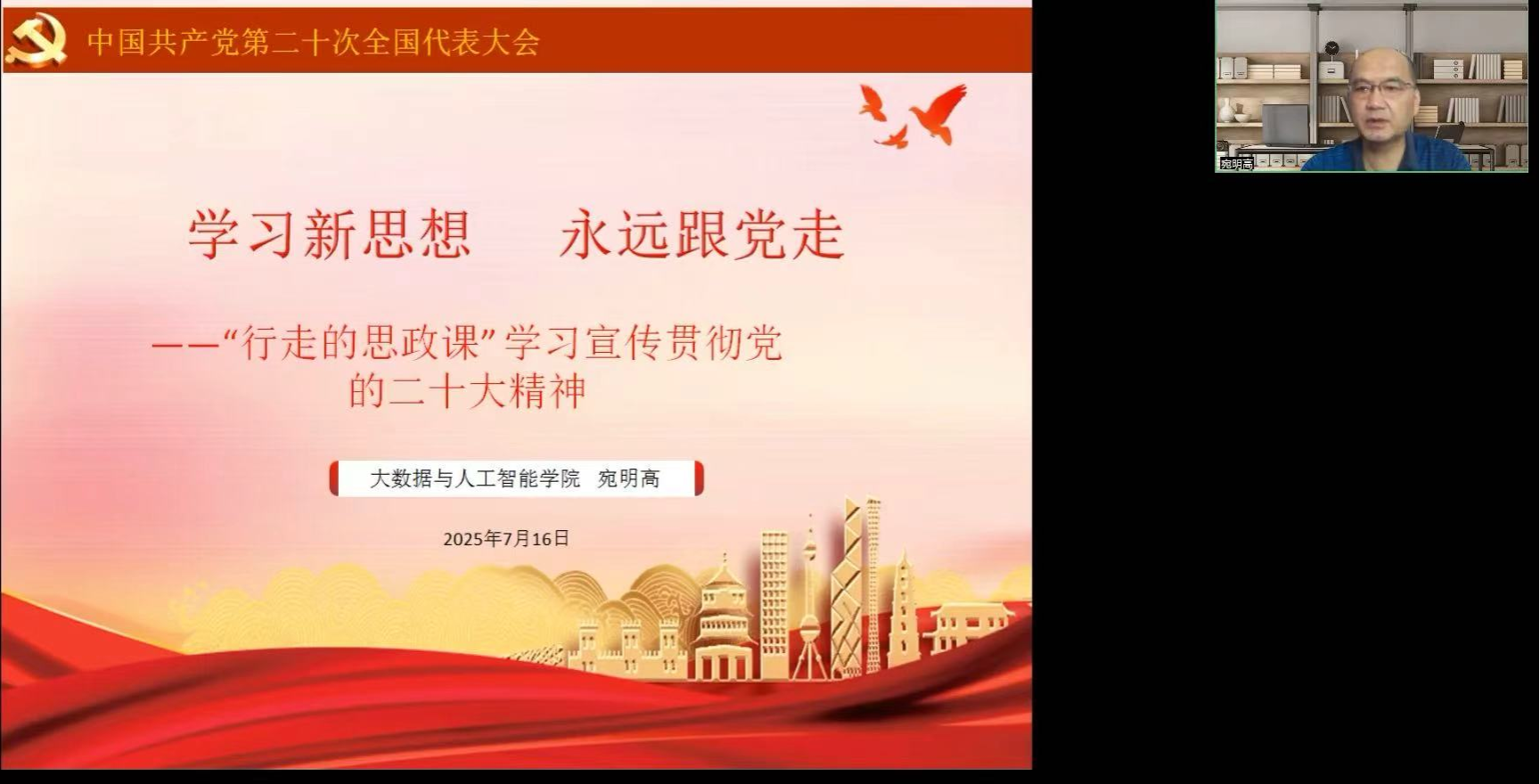 宛明高书记以“学习新思想,永远跟党走”为题,围绕“深刻领会党的二十大召开的重大意义、准确把握党的二十大报告的精神实质、全面落实党的二十大精神永远跟党走”等三个方面,对党的二十大精神进行了深入系统解读,希望同学们以“行走的思政课”为载体,以生动实践来学习宣传贯彻党的二十大精神。