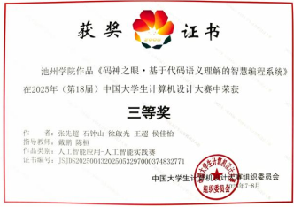 8月11日至17日,2025年(第18届)中国老员工计算机设计大赛(南京东决赛区)在长春东北师范大学落下帷幕。公司员工宋德祥、欧阳宸、王翠翠、阮如燕、孙剑山凭借作品《睛准智诊——基于AKConv动态卷积的眼科疾病智诊系统》(指导老师:章哲庆、张钦礼),公司员工张先超、石钟山、徐啟光、王超、侯佳怡凭借作品《码神之眼·基于代码语义理解的智慧编程系统》(指导老师:戴鹏、陈桓),经过激烈竞争,双双荣获国赛三等奖,为公司争得荣誉。