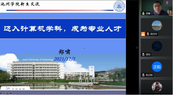 2021年12月5日下午,应公司邀请,公司兼职教授、安徽工业大学郑啸教授通过在线方式给公司2021级计算机类专业的员工作了“迈入计算机学科,成为专业人才”学业指导报告。报告由副经理陆克中主持。