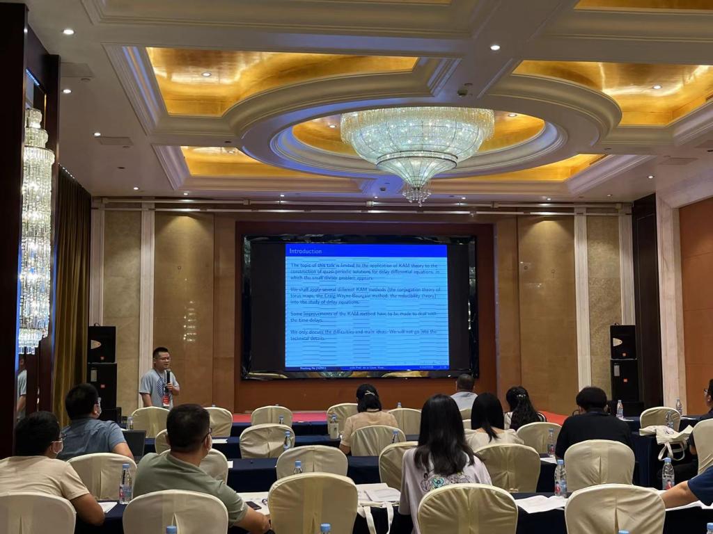 开幕式后,来自国内外的著名专家学者围绕时滞微分方程、时滞反应扩散方程渐近传播及行波解、KAM理论、微分方程的稳定性问题、奇异系统的周期轨的存在性等作了近百场精彩报告,并展开了广泛的学术讨论。会议现场氛围活跃,讨论热烈,代表们普遍反映效果良好,会议达到了预期目的。会议还进行了秦元勋奖颁奖,张伟年、甘少波两位教授荣获第十届秦元勋数学奖。