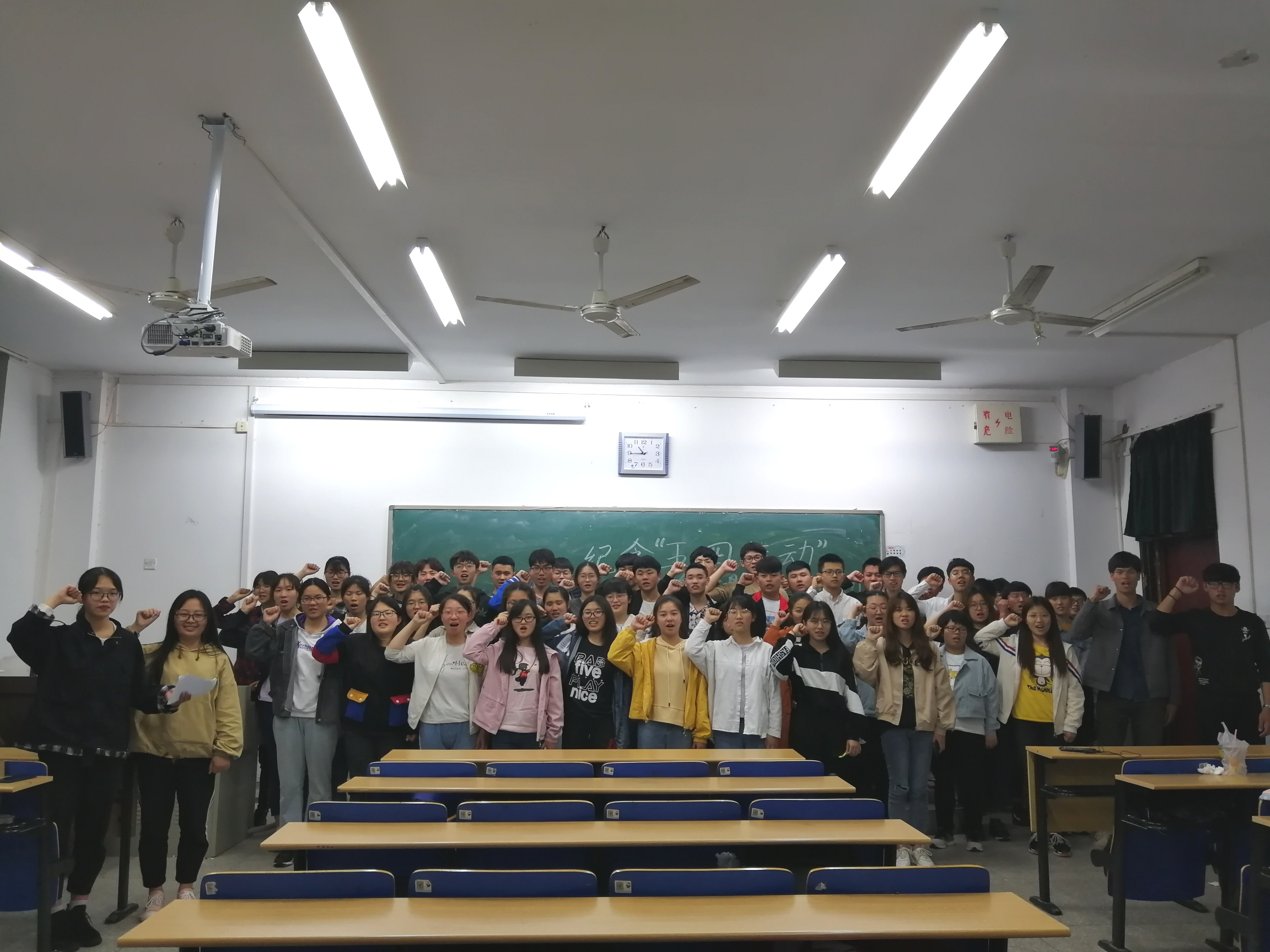 2019年4月22日晚7点,18数学与应用数学团支部在博奕北401举行纪念“五四运动”100周年主题团日活动,18数学与应用数学团支部全体成员参加,团支部书记龚淑娟和组织委员黄正赟担任此次活动的主持人。