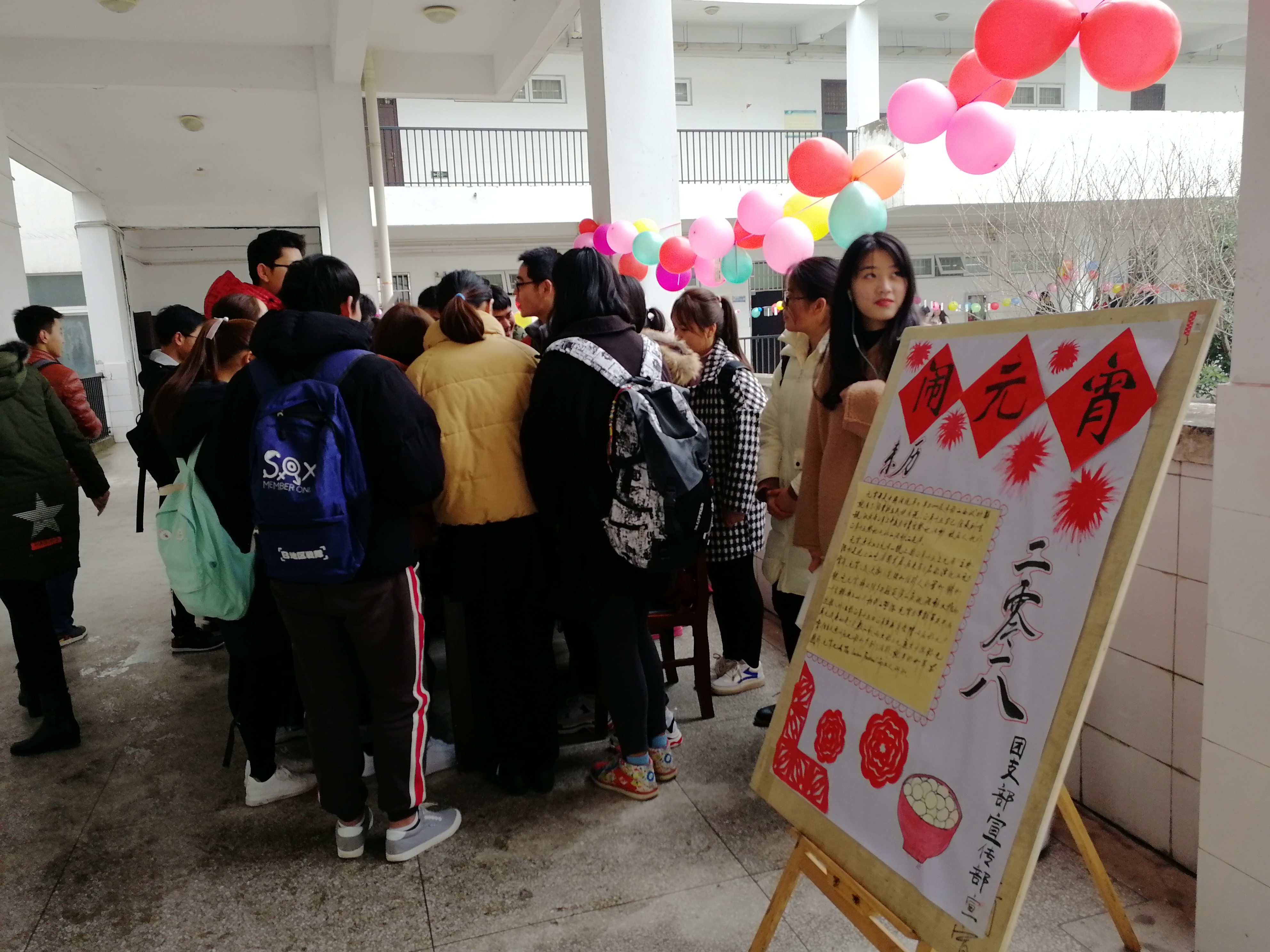 200多条涉及文字、成语、动物、日常用品、水果等的灯谜与五彩气球将博弈楼四周进行了装点,有趣而通俗的谜面吸引广大师生驻足参与,猜对谜题可领取精美礼品,活动现场洋溢着欢乐、喜庆的节日气氛。