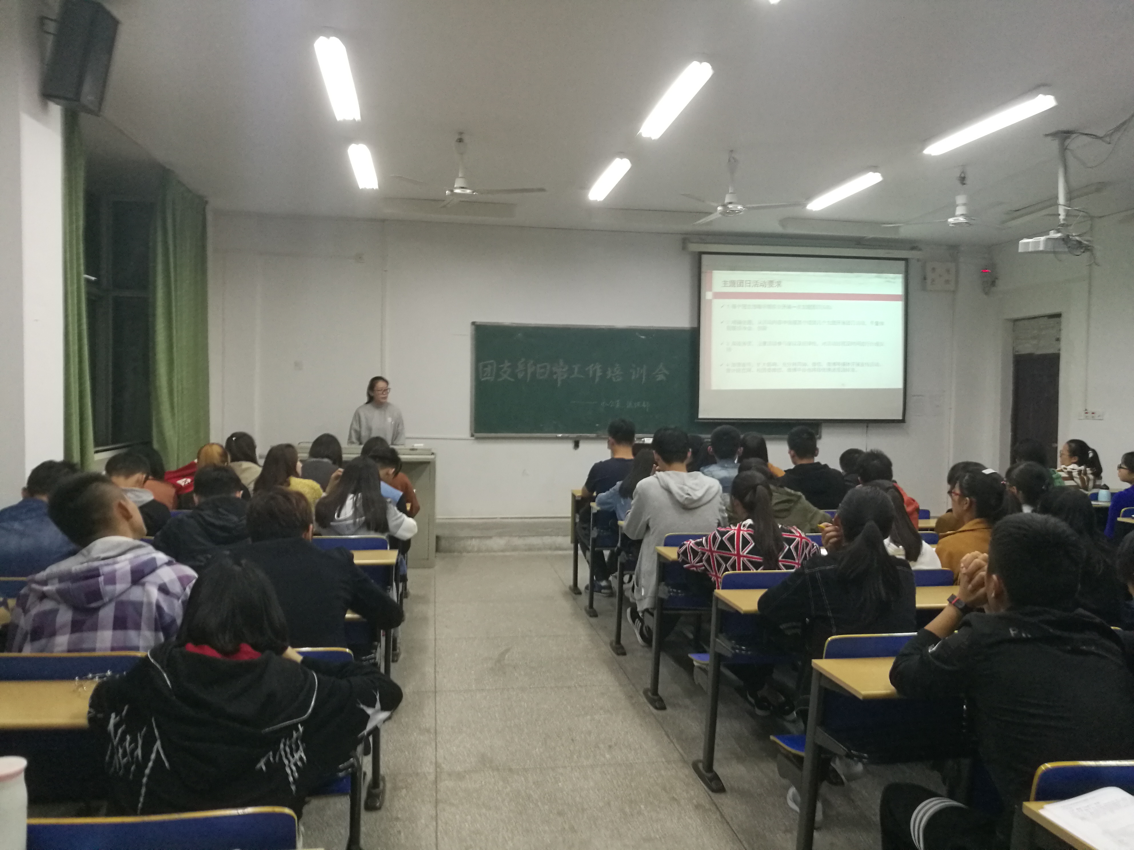 本次讲座从四个方面展开。主要就团支部的组成及支部大会、团日活动、组织生活会、新团员发展及团档整理等方面对17级团支部委员会成员进行培训。讲座中对各团支部委员会成员的职责进行了深入的讲解,同时详细介绍团日活动以及上交材料的具体要求并解释说明组织生活会的相关事宜。