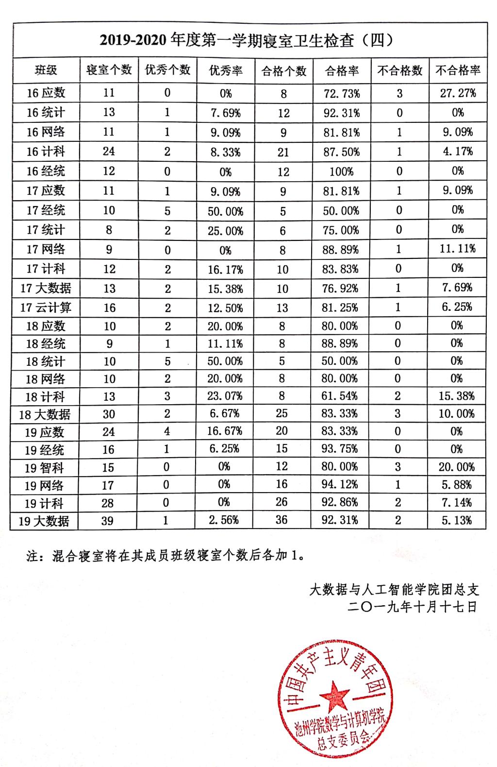 为了提高我们公司员工的寝室卫生意识,公司员工分会于2019年10月16日对公司16级、17级、18级、19级员工所在寝室进行检查。本次检查,整体情况较好,但仍有部分寝室卫生状况较差,希望卫生检查不合格的寝室及时进行整改。另外望同学们提高安全意识,严禁在寝室内使用大功率电器。以下为检查结果分析。