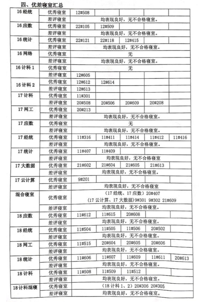 (4)19大数据存在鞋子摆放不齐,被子未叠,垃圾桶未及时清理现象。辅导员要督促同学打扫卫生。