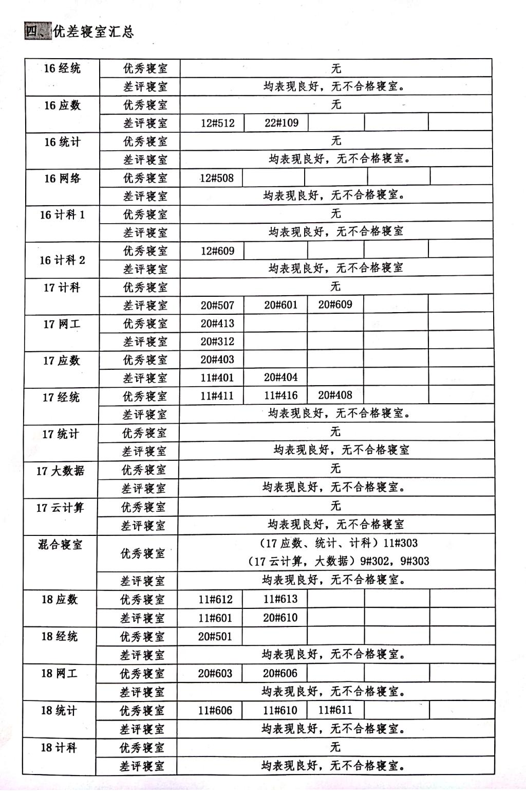 四、优差寝室汇总