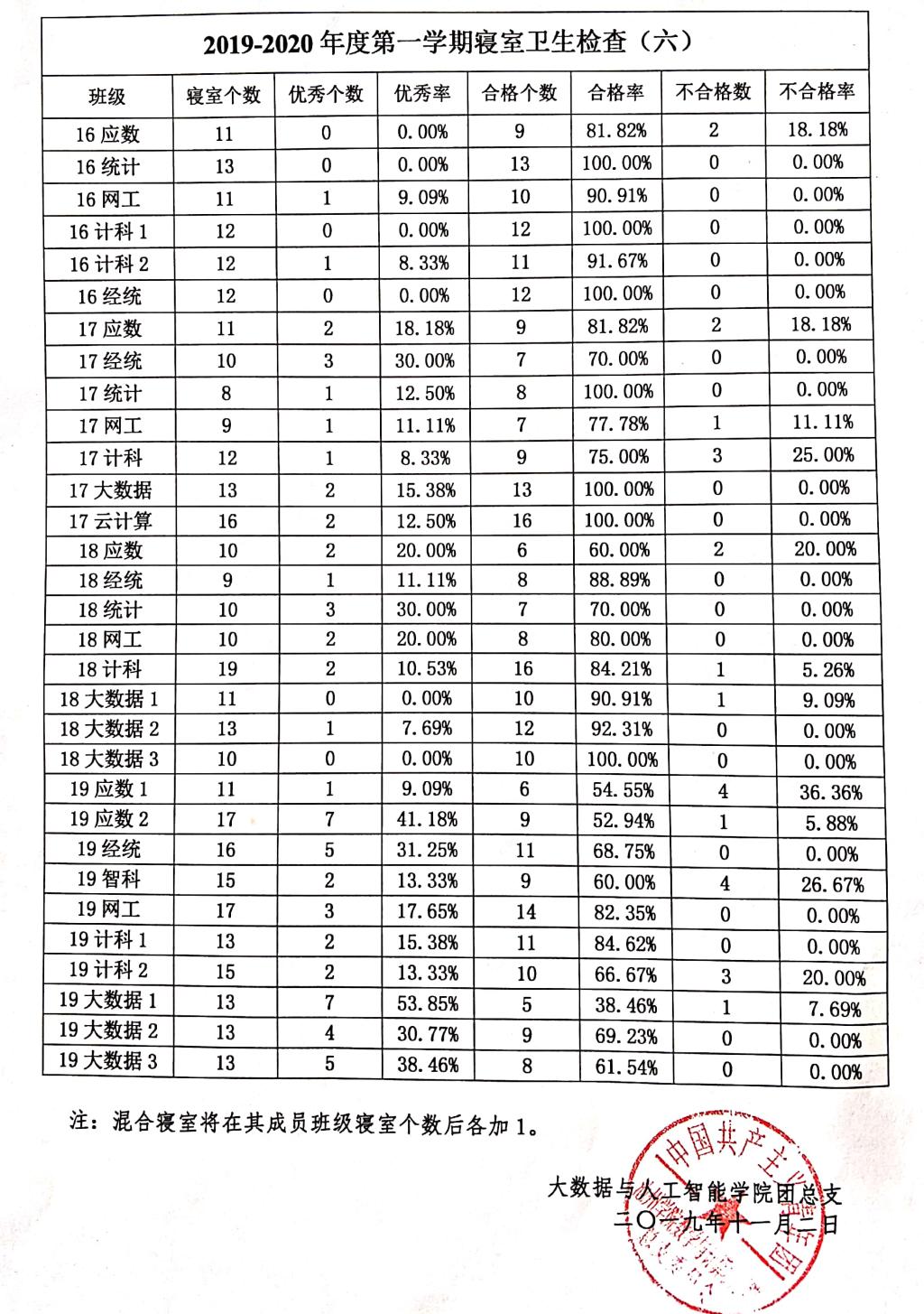 2019-2020年度第一学期寝室卫生检查(六)