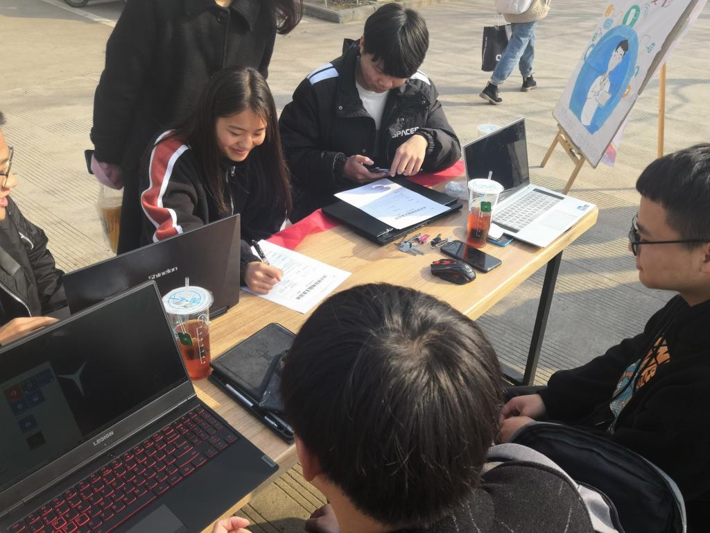 活动开始,负责人为在一食堂门口集合的志愿者进行活动安排。期间,由志愿者带领前来维修的同学填写维修登记表,维修人员根据同学需求和实际情况进行相应处理,同时也帮助同学们安装一些日常学习所需的软件。活动结束后,志愿者们清扫场地,有序离开。