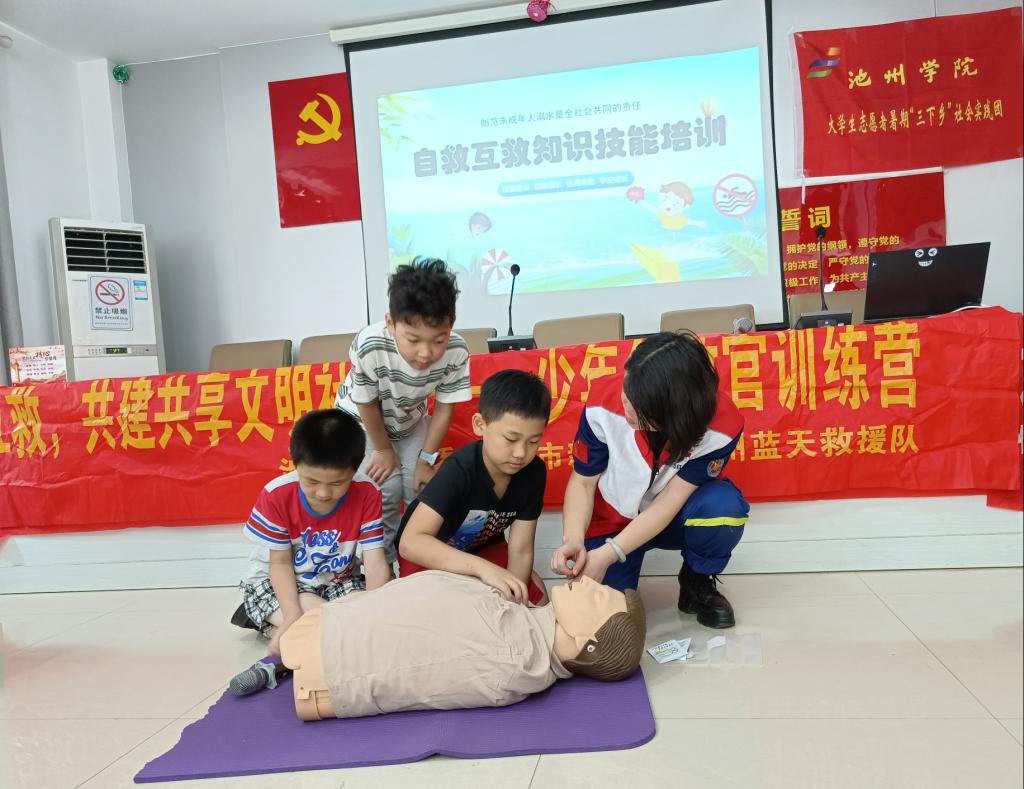 “安全第一,防护为主”,实践团成员也在课余时间内给小朋友开展了《未成年保护法》、安全用电、急救常识、防灾减灾、安全躲避雷电等一系列安全知识讲座。邀请蓝天救援队来为小朋友讲解防溺水知识,小朋友们认真回答问题并说出自己的看法,并且认真跟着救援队的姐姐学习救援手法,掌握救援知识。相关知识的普及,提高了小朋友的安全意识,遇到困难时要沉着冷静,让小朋友在快乐成长的同时,也能健康成长。