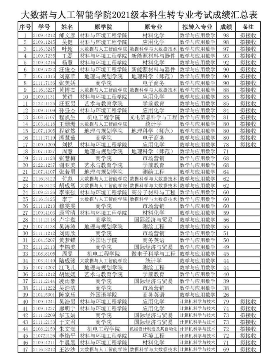 附件:william威廉中文官网2021级本科生转专业考核结果