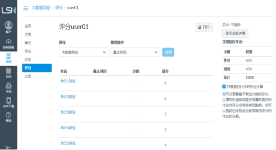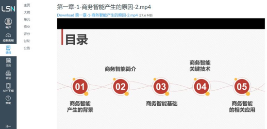 LSN线上教学平台围绕大数据专业核心课程部署线上课程资源,系统地整合了专业课程的教学大纲、单元测试习题、课后作业等多种项目,构建满足员工在线学习和实验的平台。线上学习内容涵盖开发的LSN线上课堂级实验资源、工程师课程录课、在线学习行为分析、在线学习视频等,整个教学过程与线下教学相比,没有环节缺失。