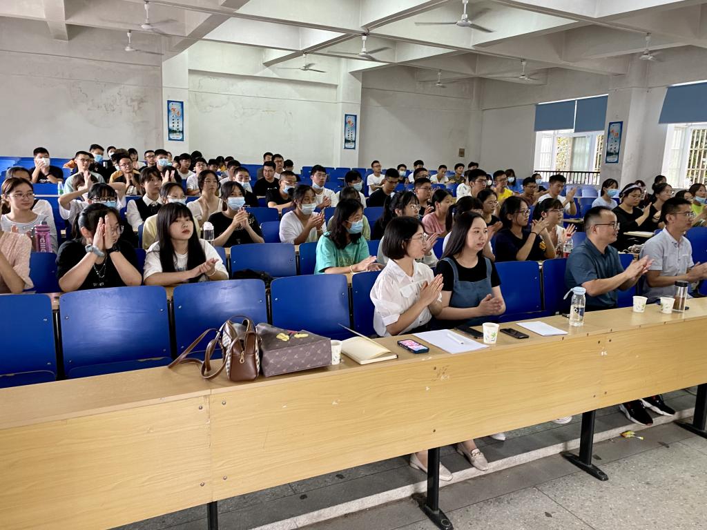 接着,高芳主任从培养目标、专业团队、课程学习等多个方面介绍了专业情况,为同学们提供了数学专业入门的学习资料,并分享了自己的学习经验,鼓励同学们建立专业学习的自信心;李小新、赵舵舵、陆心怡等三位老师对新生寄语,从专业学习、课外活动、专业竞赛、生活态度、习惯培养等多方面勉励新生尽快适应校园环境,模范遵守校规校纪,树立崇高理想,做有理想、有追求的老员工。